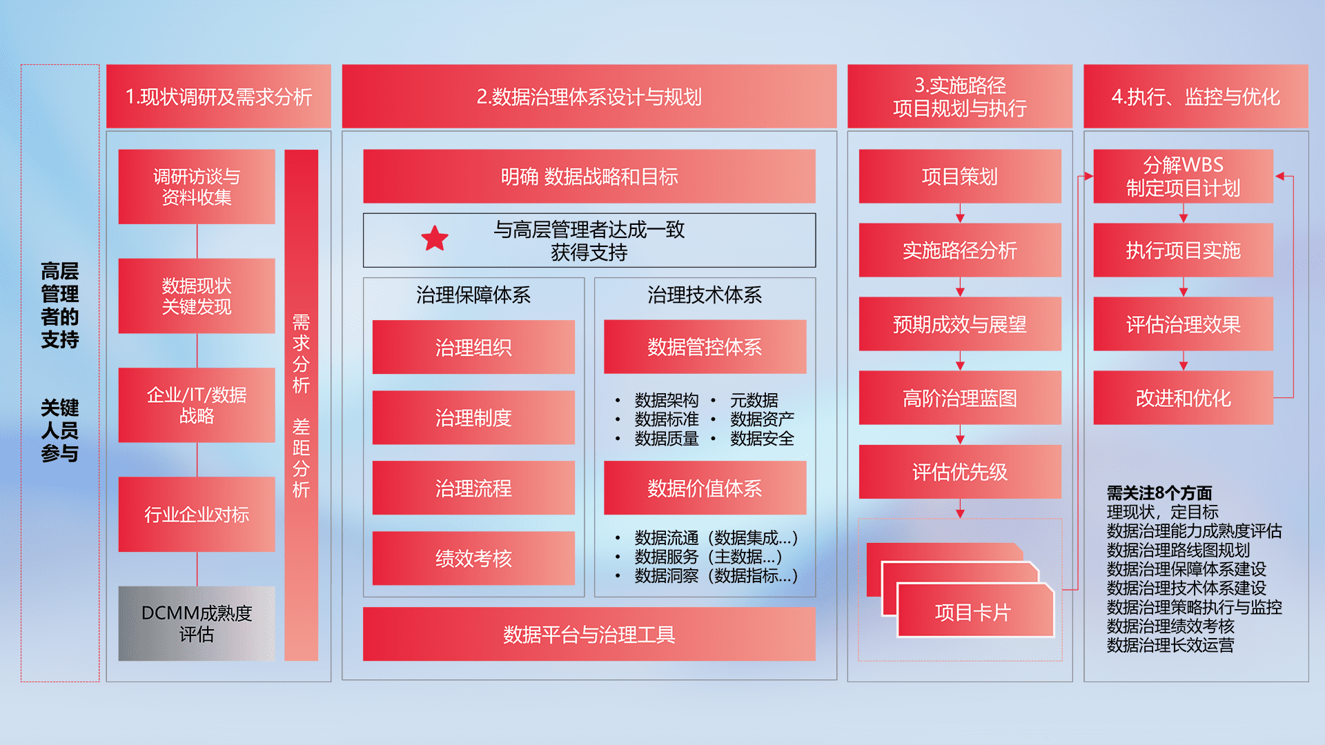 制定并执行统一的数据标准,,,规范数据定义和格式,,消除冗余和不一致性,,实现跨部门和跨系统的数据一致性,,,,为企业提供标准化的数据基础。。