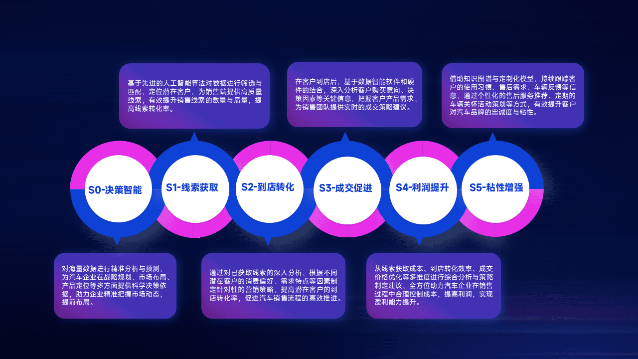 通过拓宽潜在客户来源、、、、优化线索分配并提高到店转化率,,,,以增强销售效率。。同时,,利用线索数据不断优化分析模型,,,有效提升转化率,,,,扩大营销影响力。。